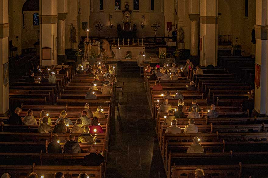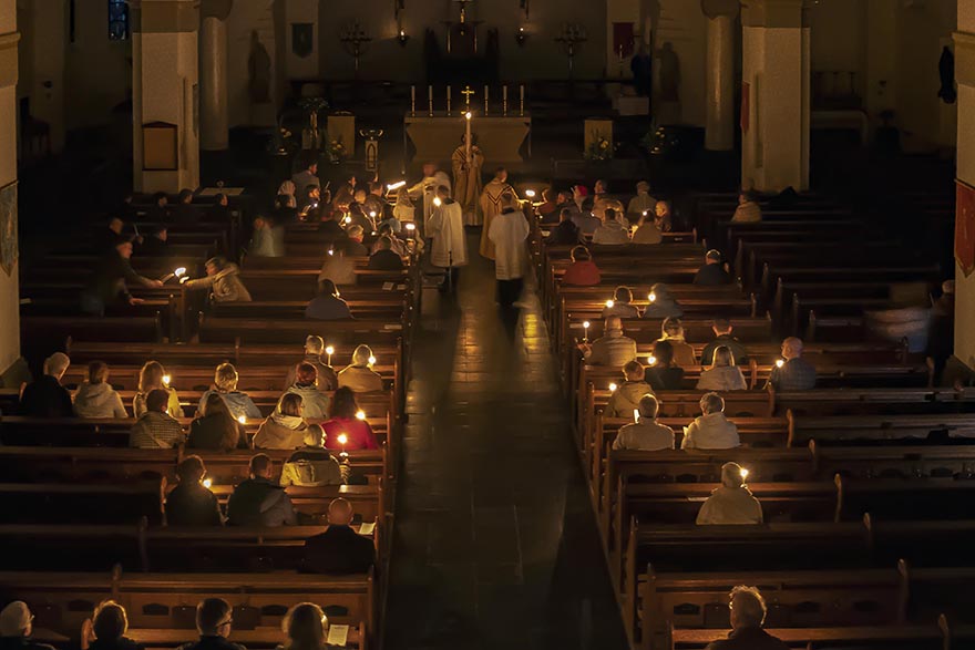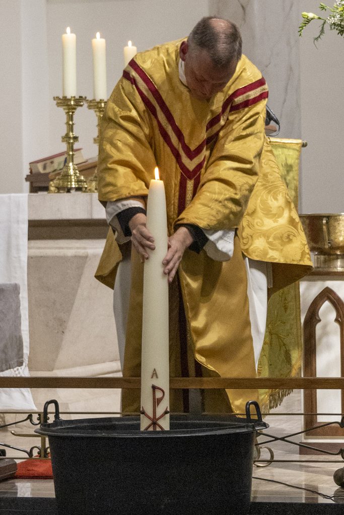 Op Witte Donderdag belichtten we de band tussen het Doopsel en de Eucharistie. In het passieverhaal op Goede Vrijdag hoorden we hoe bloed en water uit het hart van de Heer stroomden, als verwijzing naar de sacramenten van Doopsel en Eucharistie.
